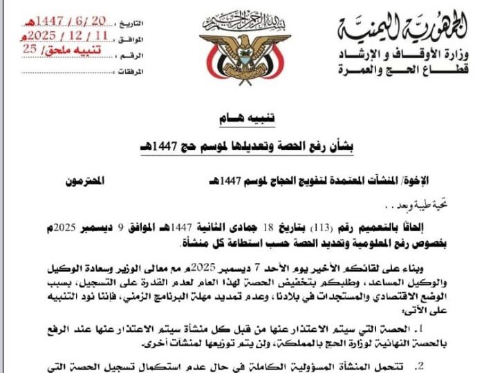 تراجعت وزارة الأوقاف والإرشاد عن توعدها لوكالات التفويج المعتمدة بسحب حصصها وإعادة توزيعها؛ وذلك مراعاة للوضع الاقتصادي المتردي الذي يعيشه المواطن اليمني والمستجدات التي تمر بها اليمن. وبعثت وزارة الأوقاف رسالة طمأنة لوكالات التفويج بأنه لن يتم توزيع الأعداد المتبقية من