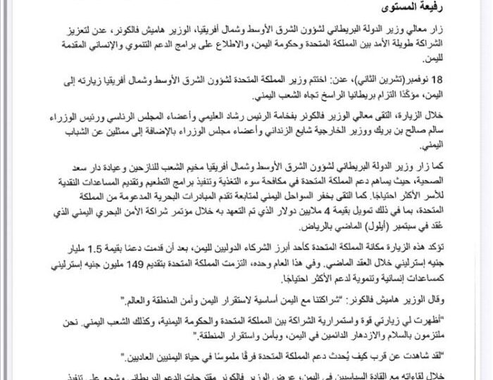 بريطانيا تؤكد أنها دعمت اليمن ب 1.5 مليار جنية استرليني خلال العقد الماضي