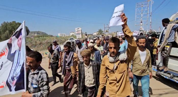 شهدت مدينة التربة جنوب محافظة تعز، اليوم الأحد، تظاهرة جماهيرية حاشدة شارك فيها المئات من أبناء منطقة الحجرية، للمطالبة بالقصاص في قضية مقتل الشاب عبدالرحمن عبدالحكيم النجاشي، الذي قُتل برصاص جنود من أمن مديرية الشمايتين قبل أيام. ورفع المحتجون لافتات تندد