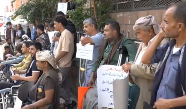 نفذ العشرات من جرحى القوات الحكومية، وقفة احتجاجية أمام مبنى السلطة المحلية في محافظة تعز، تنديداً بالتقاعس الحكومي والمحلي المستمر في تلبية مطالبهم المشروعة. وأكد الجرحى في تصريحات خلال الوقفة الاحتجاجية مظلوميتهم واستمرارهم في التصعيد والاحتجاج حتى يتم التنفيذ الكامل لجميع