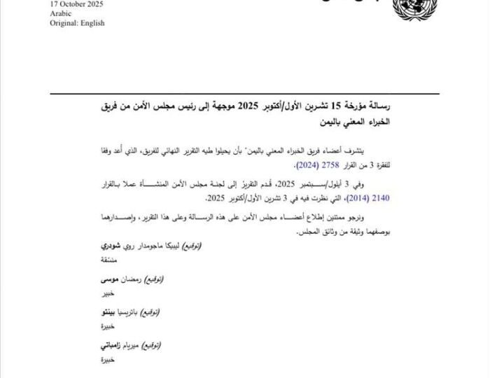 كشف تقرير حديث صادر عن مجلس الأمن الدولي (تحت الرمز S/2025/650) أن الهاوية السياسية العميقة وغياب سلطة مركزية فاعلة في اليمن هما العائق الأكبر أمام تنفيذ قرارات المجلس، بما في ذلك القرارات الرئيسية مثل 2216 و2707. وأكد التقرير أن الانقسام الحاد