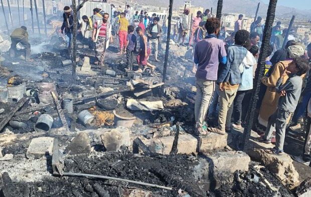 اندلع حريق ضخم، في مخيم للاجئين الصوماليين الواقع بمنطقة “سهدة” التابعة لمديرية قعطبة بمحافظة الضالع، مما أدى إلى تدمير واسع في مأوى العشرات من الأسر. وأفادت مصادر محلية لموقع قناة اليمن اليوم، بأن ألسنة اللهب التهمت عدداً كبيراً من الخيام التي