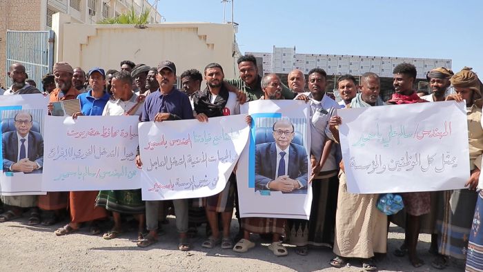 موظفو وعمال ونقابة مؤسسة موانئ البحر العربي اليمنية ينظمون وقفة تضامنية