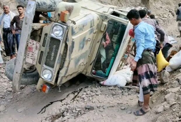 نجاة 15 شخصاً في حادث مروري مروع بمديرية جبل حبشي غرب تعز