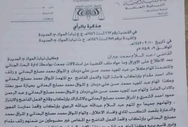كشفت مستندات قضائية صادرة عن نيابة الحديدة الخاضعة للحوثيين أن عضو جهاز الأمن والمخابرات التابع للجماعة عبدالملك محمد عياش قحيم وشقيقه منصر مرتبطان بشكل وثيق في تيسير وإدارة شبكة دعارة منظمة ومعقدة في المحافظة الساحلية. وتشير وقائع التحقيقات إلى أن الشبكة