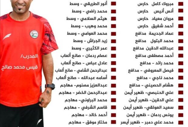 استدعى الكابتن قيس محمد صالح، مدرب المنتخب الأولمبي لكرة القدم تحت سن 23 عاما، قائمة تضم 44 لاعبًا للالتحاق بالمعسكر الداخلي المقرر انطلاقه بعد غد الأحد في صنعاء، تحت إشراف الاتحاد العام لكرة القدم. يأتي ذلك استعدادا للمشاركة في بطولة كأس