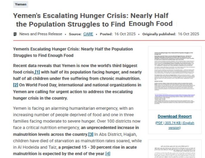 By early 2026, over 18 million people across Yemen are expected to face crisis levels of hunger, including approximately 41,000 at risk of famine, according to a recent press release signed on World Food Day (16 October 2025) by more than